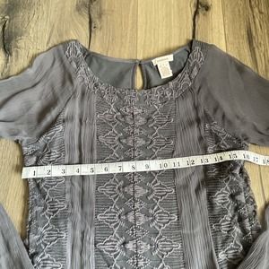 Sundance Womens Size 2 Gray Lace Chiffon Dress Maxi Midi Length Gray Long Sleeve