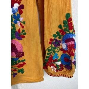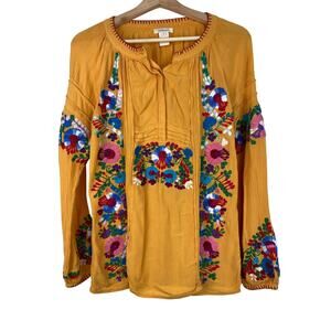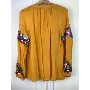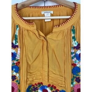 Sundance Women's Size S Orange Colorful Floral Embroidered Pleated Tunic Top