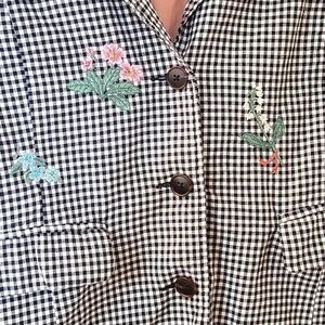 sundance, sundance blazer, sundance gingham floral embroidered blazer, sundance floral embroidered blazer, sundance tansy blazer, sundance small tansy blazer, womens blazer, womens small blazer, work, office, career, meeting, business, stylish, fashionable, conference, travel, vacation, cotton, linen, natural, floral, gingham, embroidery, embroidered, embroidered blazer, brunch, weekend, spring, artsy, art to wear