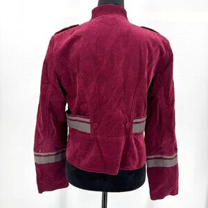 Sundance Womens Velvet Furlough Jacket Size M Burgundy Military Style Striped