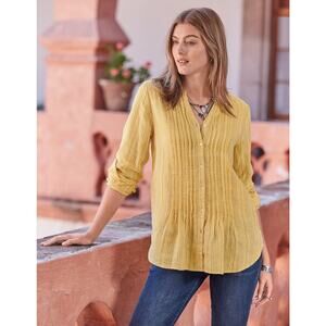 Sundance Women’s Warm Breeze 100% linen Tunic Top LP Pintuck Button Down
