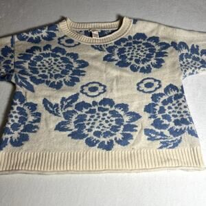 Sundance Womens White with Blue Flower Sweater Size Large