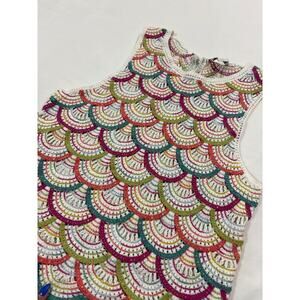 Sundance Womens XS Sleeveless Colorful Scalloped Blouse Knit Top Fun Summer