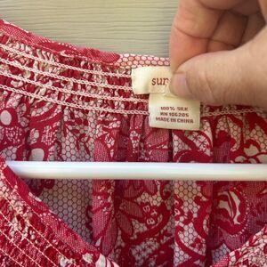 Sundance Women’s size L 100% silk floral toile print br Flowy button blouse