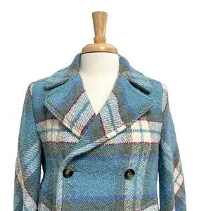 Sundance Wool Blend Plaid Double Breast Coat Twee Boho Blue size XS Petite