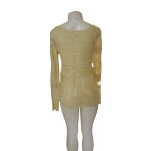Sundance Yellow Sheer Lace Peplum Top XS Rayon/Spandex
