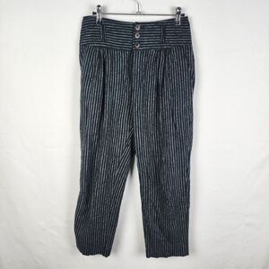 Sundance amelia pinstripe linen blend pleated trouser pants black white size P4