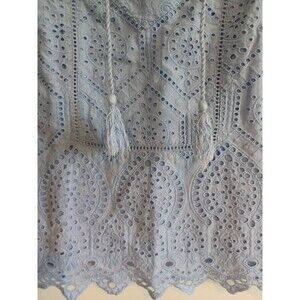 Sundance blue eyelet cotton blouse S lined pullover tank tassels preppy boho