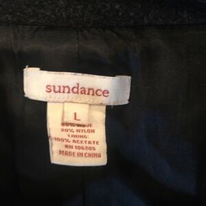Sundance charcoal wool belted coat size large no buttons for closure just belt. Slit pockets and full lining inside