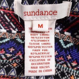 Sundance embroidered Tatou belted open front long coat with pockets and faux fur trim, size medium.