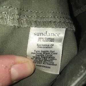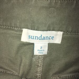 Sundance flat front, trendy, feminine green khaki, cropped pants. Rick rack trimmed hems and pockets. In good, used condition. Approximately 14 inches across the waist, 10 inch rise, 26 inch inseam. From a pet and smoke free house. Happy to bundle!