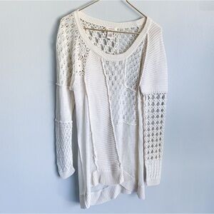 Sundance linen cotton crochet patchwork scoop neck knit sweater cream size large