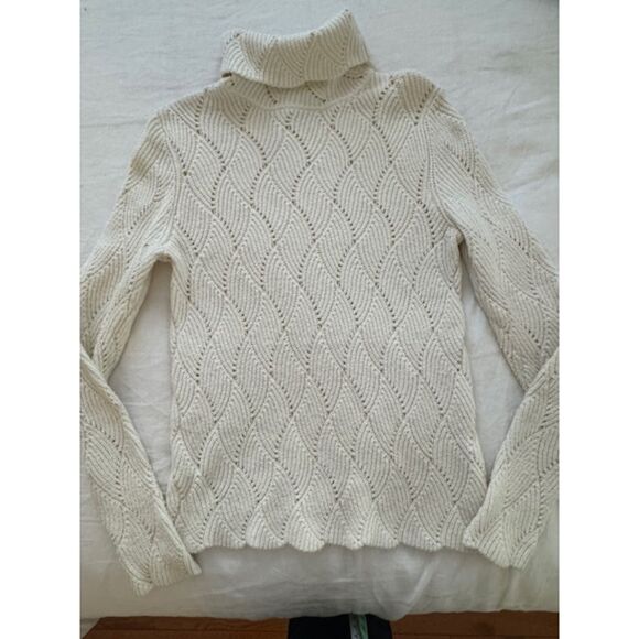 Sundance scallop edge turtleneck sweater, off-white, size Large.