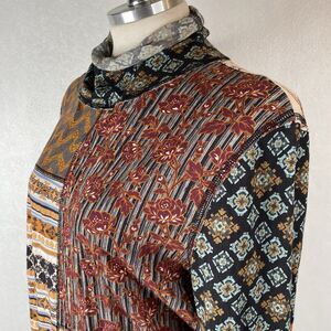Sundance sz L Floral Patchwork LS Turtleneck Top super Lightweight Cotton Modal blend Boho