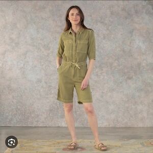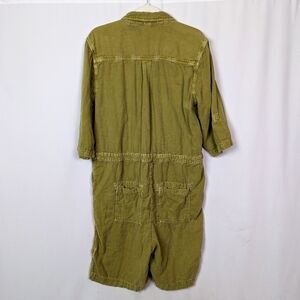 Sundance sz L Utility Cargo Jumpsuit Romper Army Green Drawstring Waist Wide Leg