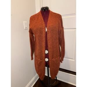 Brighten up any winter day in this raspberry tunic sweater with crochet trim at cuffs as funnel neck, 24” long, 22 “ pit to pit