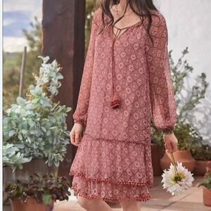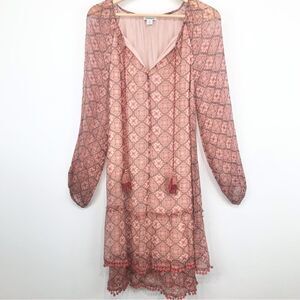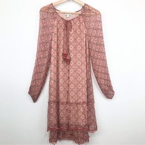 Sundance Mosiac Breeze Dusty Orange Mosaic Pattern Tiered Flowy Sheath Dress