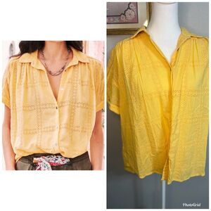 Sundance Tensift Eyelet Yellow Button Down Shirt Small Boho Oversized