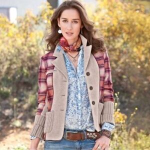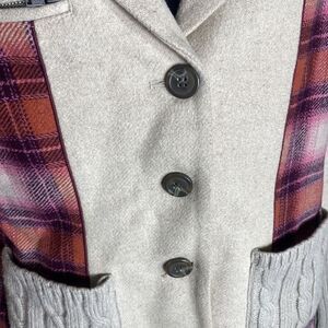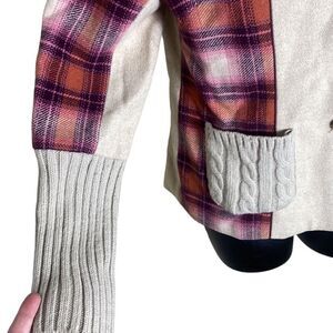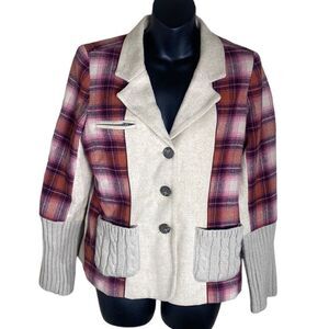 Sundance wool blend plaid mixed media preppy academia cardigan jacket 8p