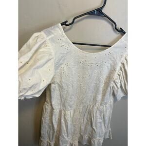 Sunday Best Aritzia White Eyelet Bubble Sleeve Peplum Girly Romantic Blouse XS