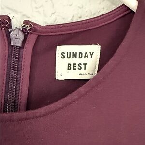 Chic deep purple dress with long sleeves. Fitted waist and pleated skirt design.