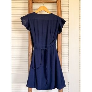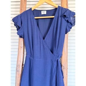 Sunday Best Dress Navy Blue Wrap Ruffle Sleeve Casual Party XXS