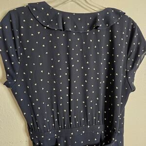 Sunday Best Heart Print Ruffle Mini Wrap Dress Navy Size 4 Date Night Out Brunch