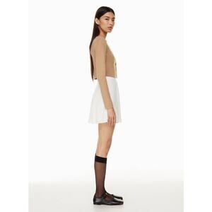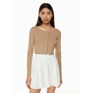 This is a cropped button-up cardigan with a crew neckline and fully fashioned construction. It’s knit with Wonder Yarn — the lightweight yarn that lives up to its name. This peachy-soft yarn offers the all-season warmth of wool, without the wool. It’s made with LENZING™ ECOVERO™ Viscose — responsibly sourced wood-based fibres produced through a process that reduces impact on forests, biodiversity and water supply. It’s constructed using a Double Knit stitch for structure and a flat, dense feel.