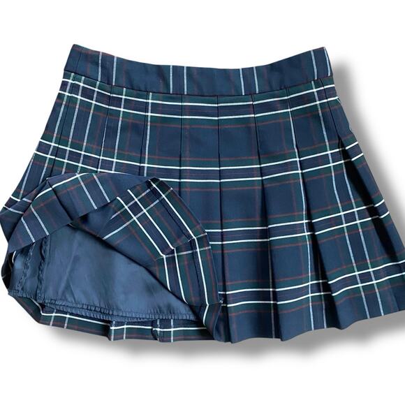 Sunday Best Pleated A Line Plaid Mini Skirt Sz 10 Navy Red Green Preppy