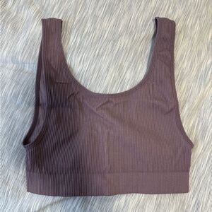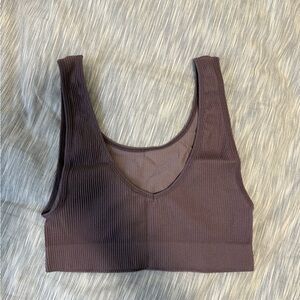 Ribbed texture with a scoop neckline. I have found it to be reversible