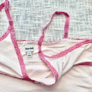 Pink Monochrome Colorway, Adjustable Straps, Double Lined Material, Lace Trim