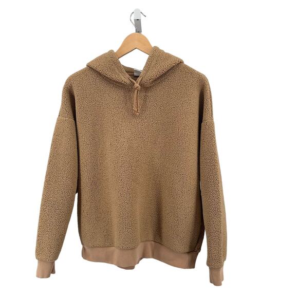 Sunday Best Sherpa Sweatshirt Tan WMNS Aritzia Hoodie XS Ribbed Side Zip Pockets