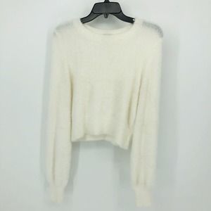 Sunday Best Women's Kitten Sweater Medium White Fuzzy Jersey Knit Crewneck