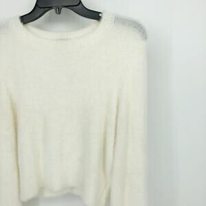 Sunday Best Women's Kitten Sweater Medium White Fuzzy Jersey Knit Crewneck