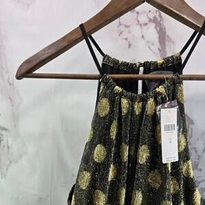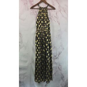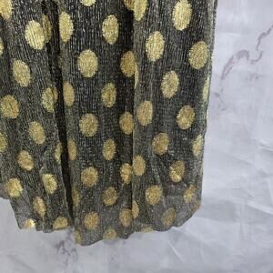 Sunday Brooklyn Dress Womens Medium Gold Polka Dot Midi Spaghetti Shimmer