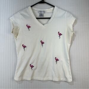 Sunday Brunch Vintage Shirt Cardigan Set Small Pink Flamingos Beaded Embroidered