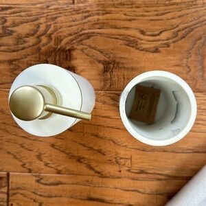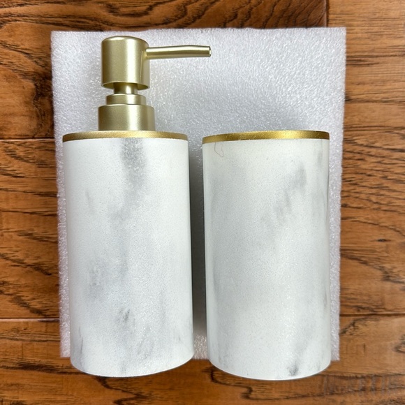Set includes 11 oz Refillable soap dispenser & 11 oz toothbrush holder (or can be used as a cup)