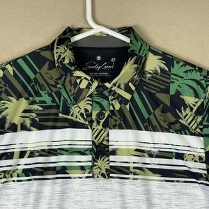 Sunday Crew Polo Shirt Men Small White Green Black Golfing UPF 50+ Adult