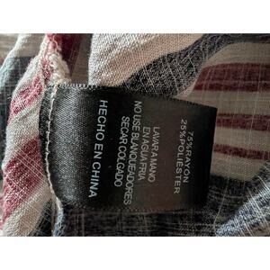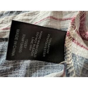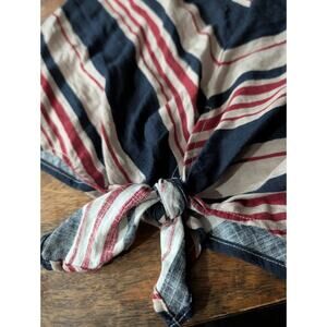 The product is a women's top from Sunday In Brooklyn in a small size, featuring a blue spruce color with a v-neck and tie waist design. Made from a blend of polyester, spandex, and modal, this long sleeve blouse is perfect for casual occasions such as travel, parties, or everyday wear. The lightweight and breathable fabric makes it suitable for all seasons, while the regular fit ensures comfort. Hand wash only to maintain its quality. Ideal for those looking for a stylish and easy-to-care-for top for their wardrobe.