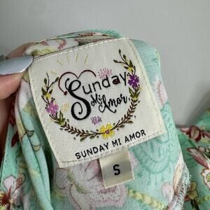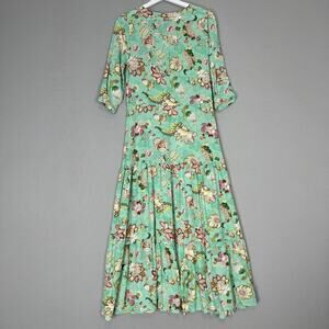 Sunday Mi Amor Anthropologie Dress Womens Small Green Floral Maxi Tiered Cottage