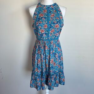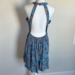 Sunday Mi Amor Blue Floral Halter Dress Size S Boho Summer Ruffle Mini