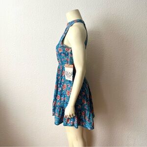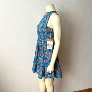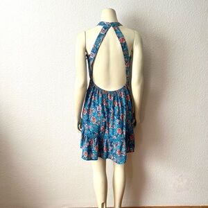 Sunday Mi Amor Floral Halter Neck Sleeveless Open Back Mini Dress Blue Swing S