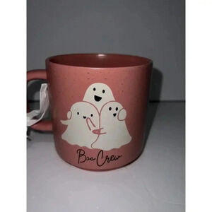Enjoy your morning cup of coffee or tea in this unique Sunday Morning Boo Crew Coffee Mug. This double-sided mug features a spooky ghost charm and a pink Halloween design, making it the perfect addition to your collection of dinnerware and serveware. The mug is made of high-quality ceramic and porcelain materials, ensuring its durability and longevity.