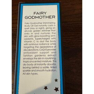 Fairy Godmother Shimmering Body Oil Gel instantly casts a spell (day or night), giving you an all-over, golden shimmer that sinks in and nurtures the skin with glow-boosting antioxidants. Supercharged with Vitamin C to dust the body with luminous radiance while targeting the appearance of discolorations. CoQ10 provides antioxidant support and Tahitian gardenia extract envelops the skin in nourishing tropical-scented moisture. This dry body oil instantly absorbs, leaving behind a subtle, tinted sparkle and smooth hydration.