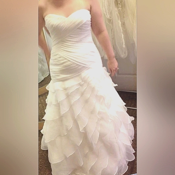 @sabrinacat83 this is new with tags. has not been worn. I pulled the Pic off the internet as an example. brand new from David's Bridal, however it may have been tried on in the store? but no alterations have been made. hope that helps. my supplier gets these direct from stores clearing out their inventory.