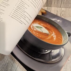 Discover a year's worth of mouthwatering, easy-to-make soup recipes with 'Sunday Soup' by . The cookbook features a striking brown and orange cover, adding a touch of warmth to your kitchen collection.
