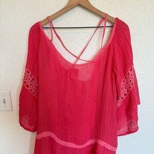 Sunday St. Tropez Blouse Women's M/L Linen Pullover Tunic Top Gauze Pink