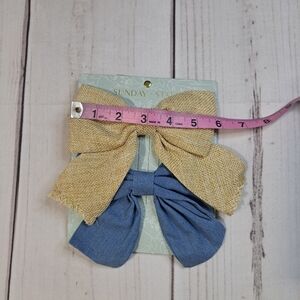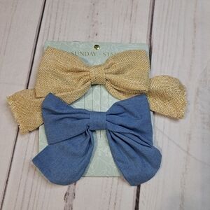Set of two hair bows in burlap and denim. Perfect for adding a chic touch to any outfit.