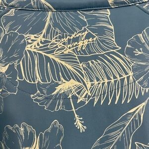 Stylish blue top with a floral design. Features a quarter-zip style.