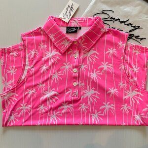 Sunday Swagger Stylin' Women's Sleeveless Polo | Size L | Hot Pink w/ White Palm